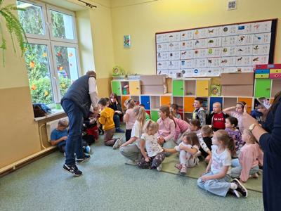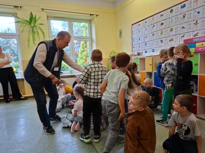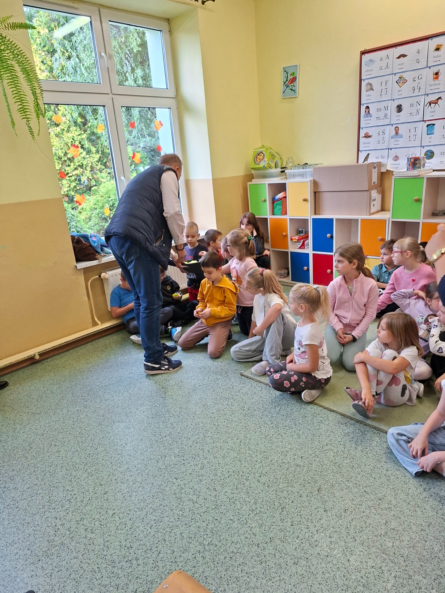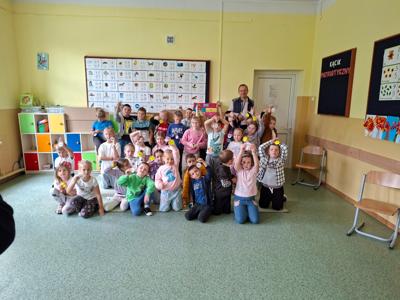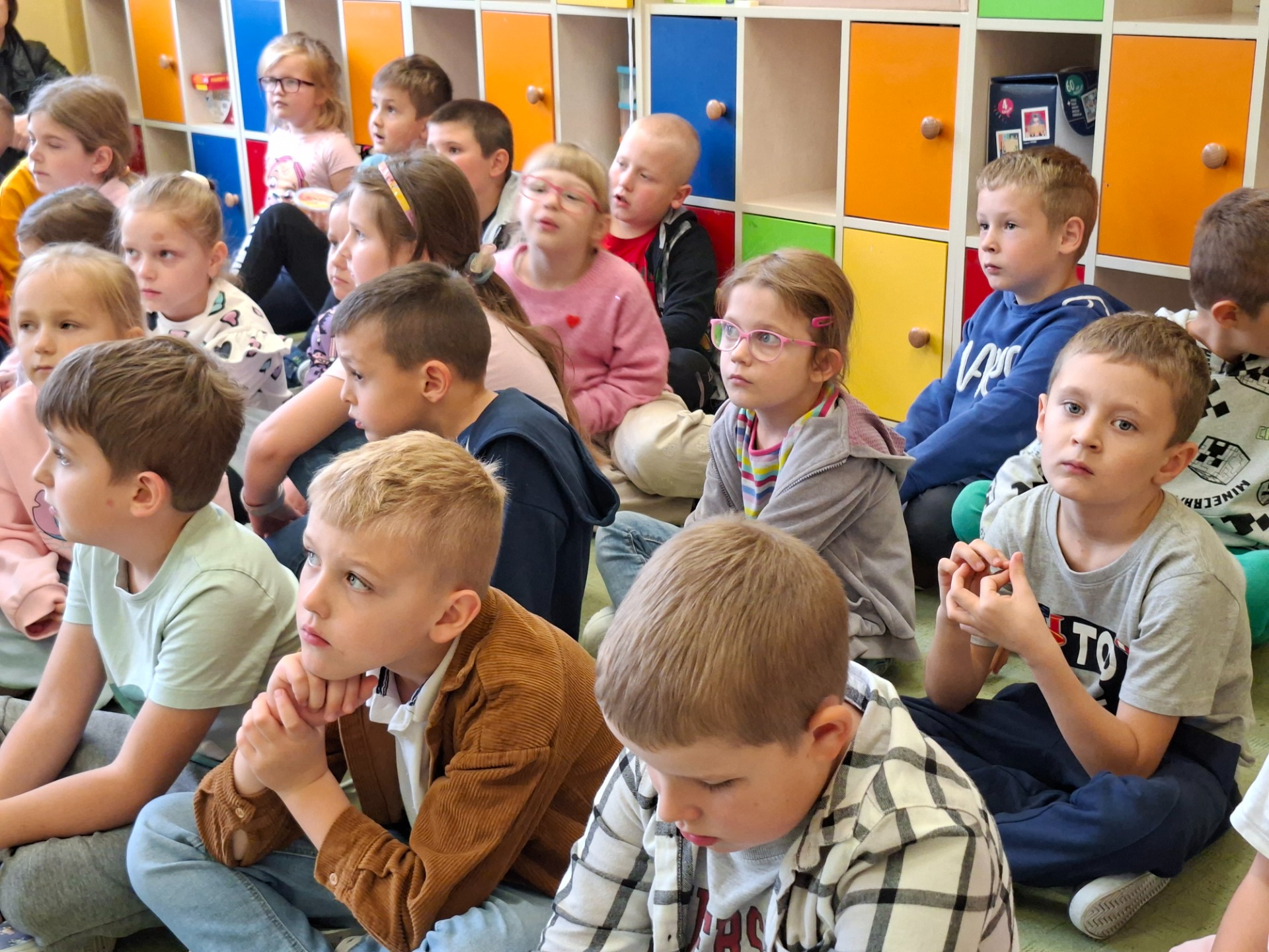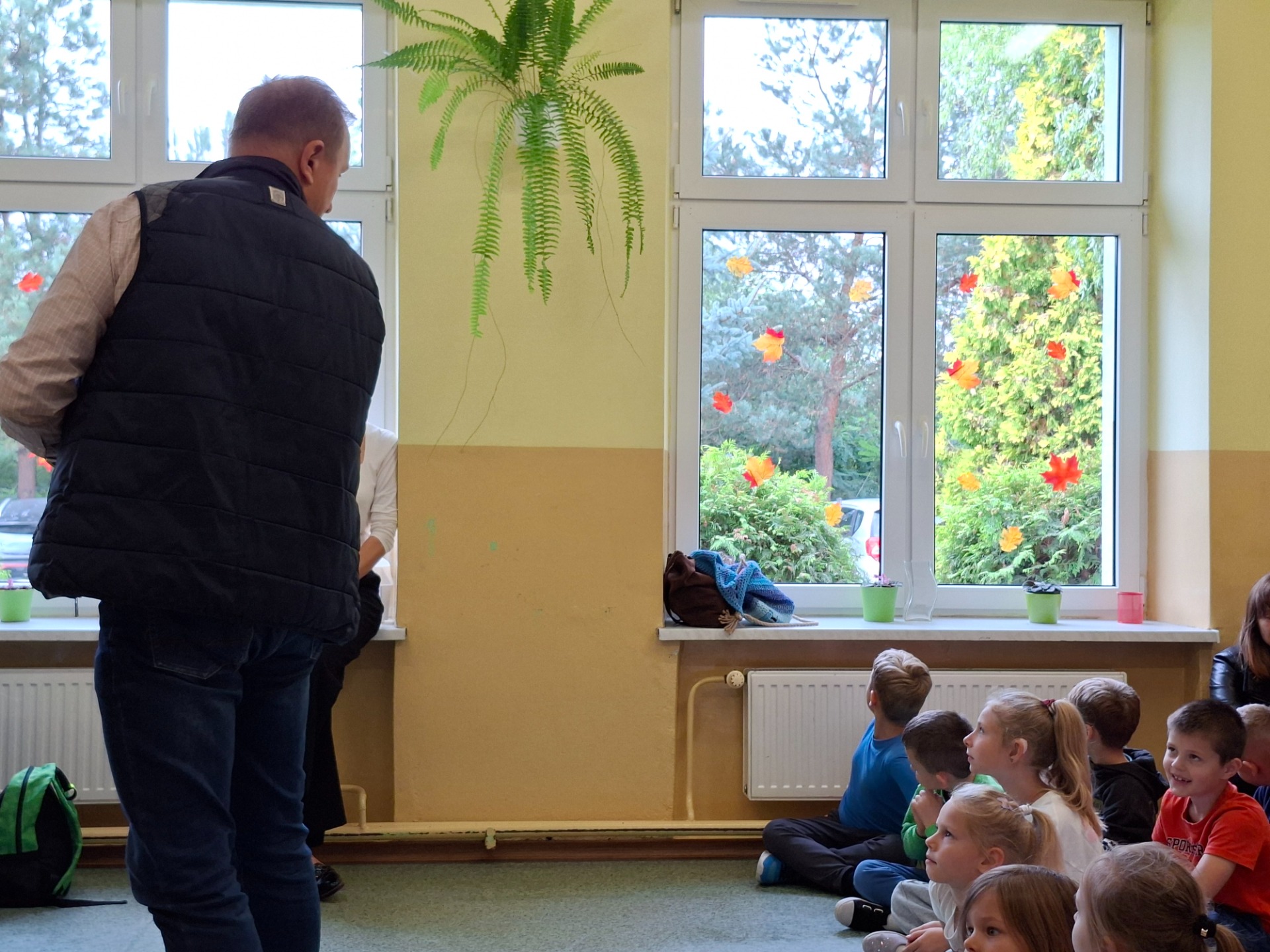 W ramach akcji ,, Odblaskowe pierwszaki” z uczniami kl. I a i I b spotkał się p. Krzysztof Osóbka przedstawiciel Wojewódzkiego Ośrodka Ruchu Drogowego ze Skierniewic. Spotkanie odbyło się 1października, dotyczyło znaczenia odblasków dla bezpieczeństwa w ruchu drogowym każdego z nas. Pan Osóbka przypomniał podstawowe zasady bezpieczeństwa, zwizualizował przechodzenie przez pasy, oraz na skrzyżowaniu świetlnym. Zachęcał do aktywnego udziału w spotkaniu wszystkich uczniów. Uczniowie otrzymali odblaski do zawieszenia przy plecakach. Prowadzący spotkanie stworzył bardzo miłą atmosferę.