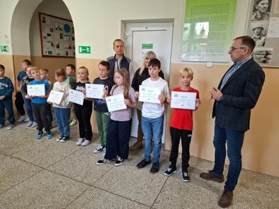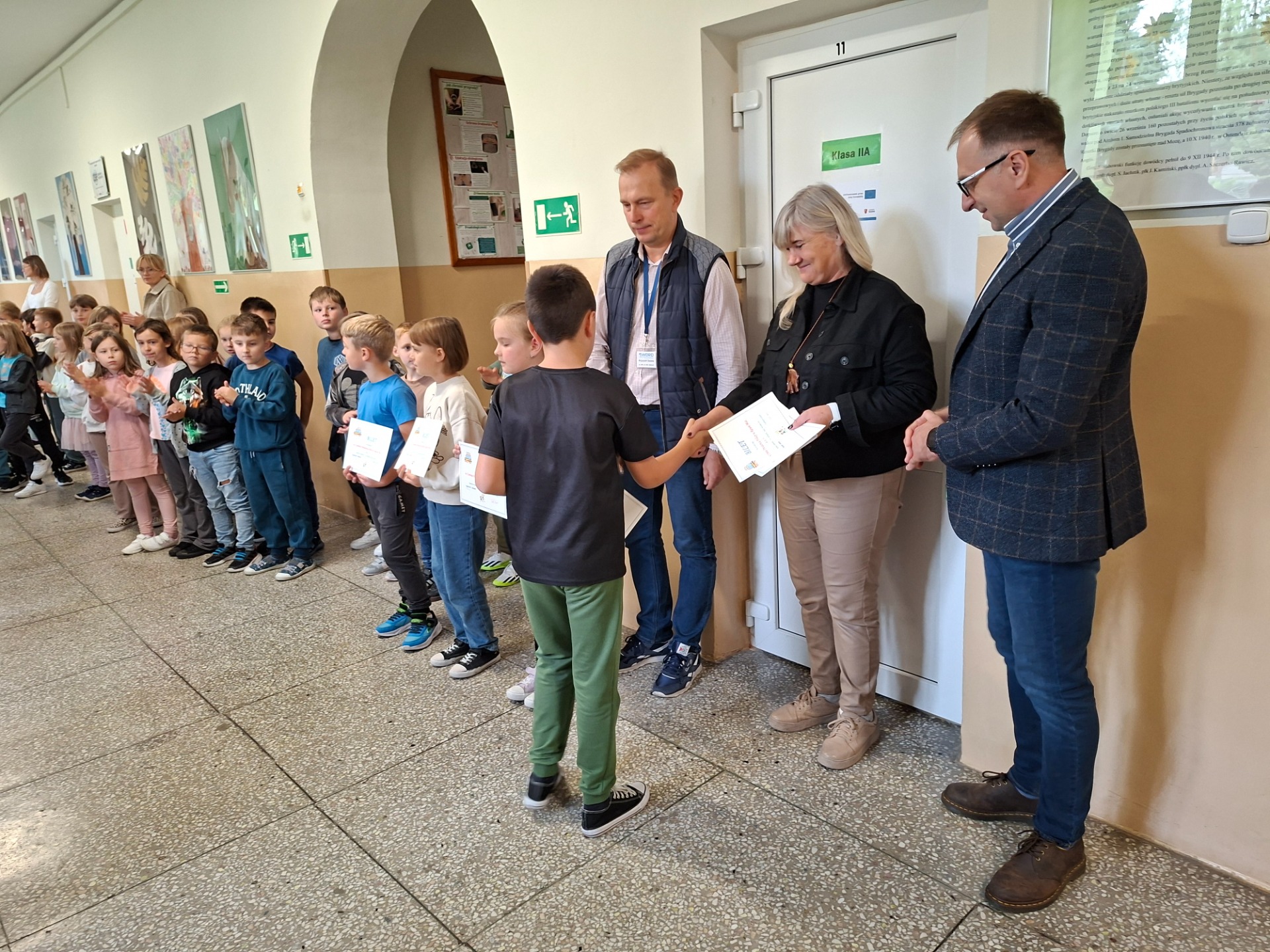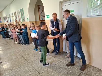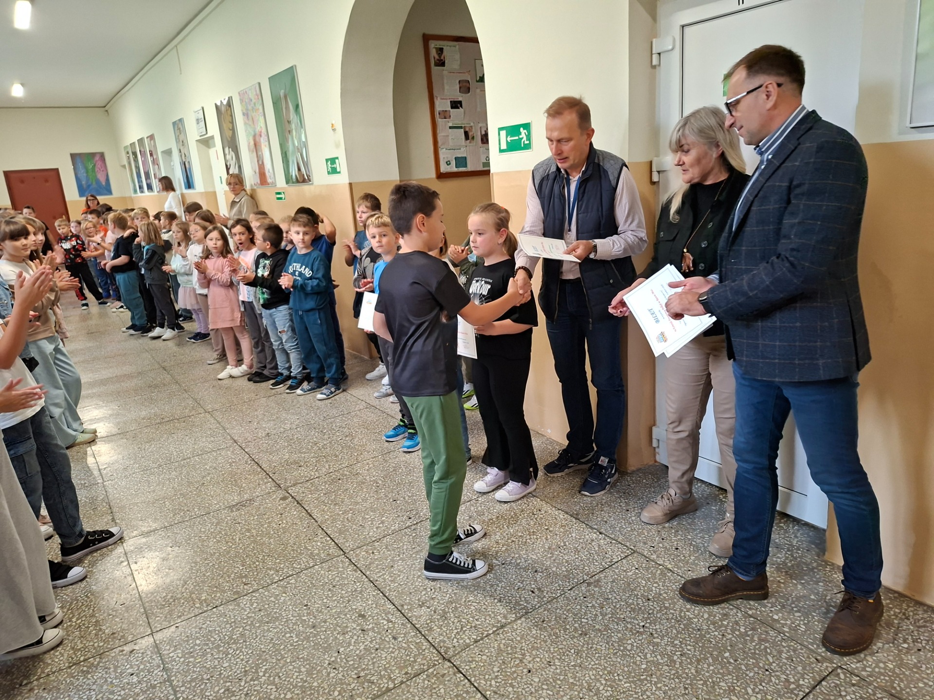 1 października na apelu szkolnym wręczone zostały nagrody w konkursie ,, Noś odblaski- bądź bezpieczny” za rok szkolny 2024/25. Nagrody w postaci biletów na wycieczkę do Komendy Powiatowej Policji w Rawie Mazowieckiej otrzymały klasy: I a, II a, III, IV, V a, V b oraz VIII a. Bilety wręczył przedstawiciel WORD ze Skierniewic p. Krzysztof Osóbka.