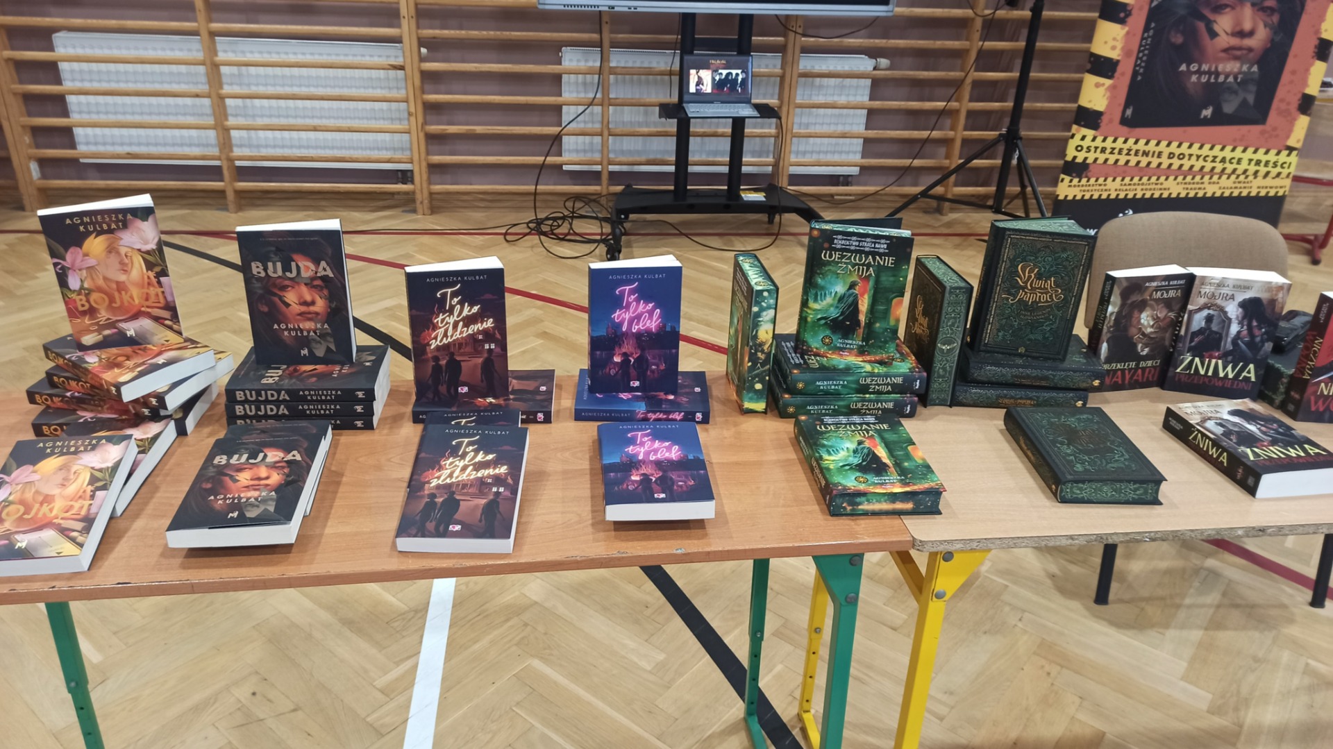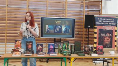 Dnia 12.12.2025 w naszej szkole zostało zorganizowane spotkanie z pisarką - p. Agnieszką Kulbat, autorką powieści z gatunku fantasty, thriller. Spod pióra pani Agnieszki wyszło m. in. "Bujda", "Bojkot" czy "Wezwanie Żmija". Nasi uczniowie z wielkim zainteresowaniem wysłuchali prelekcji p. Agnieszki Kulbat oraz bardzo chętnie uczestniczyli w rozmowach z pisarką.