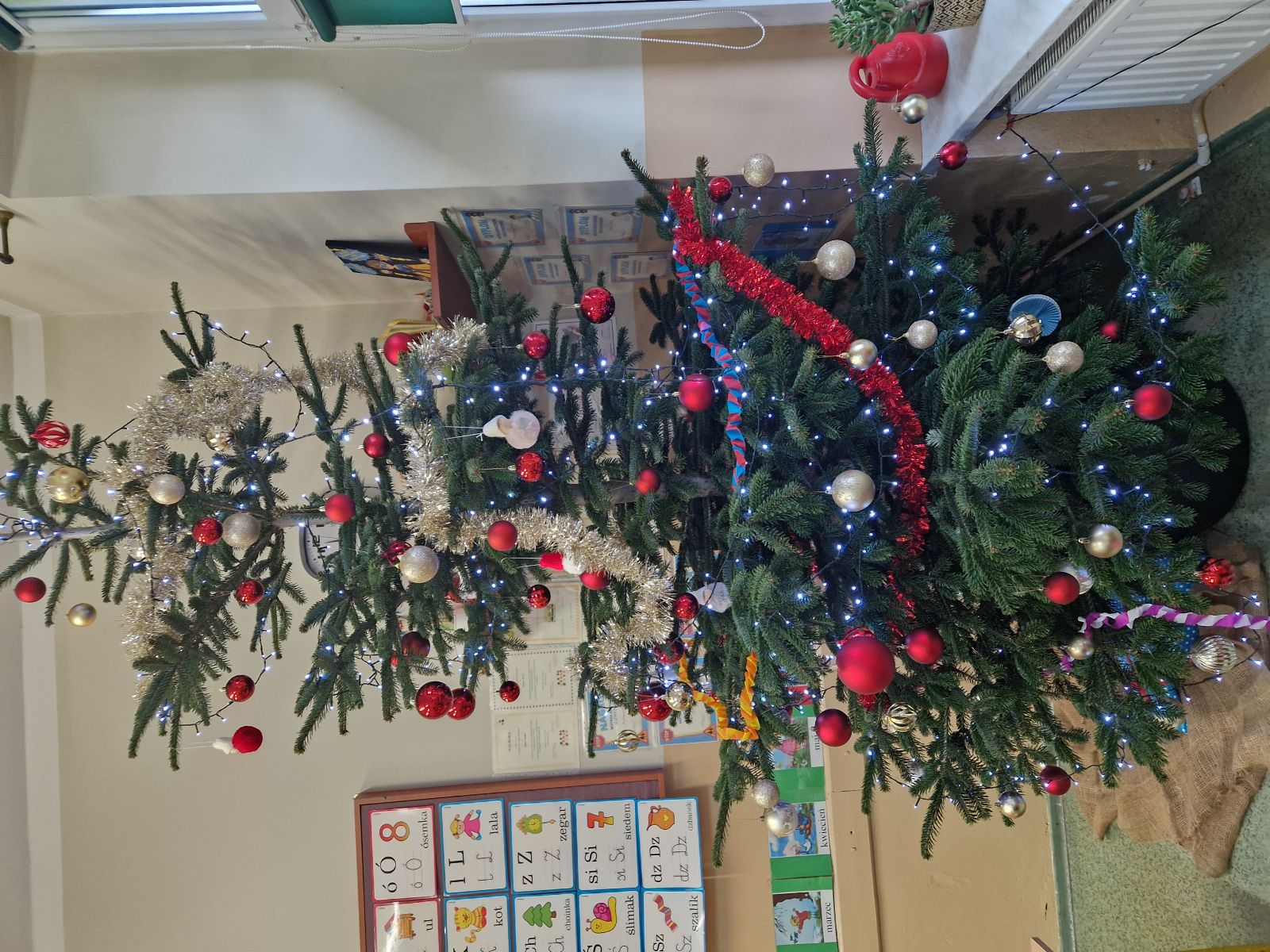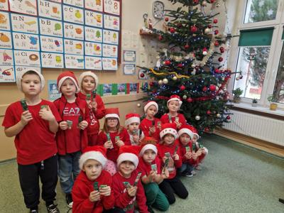 Uczniowie klasy Ia w dniu 5 grudnia 2025r. obchodzili klasowe mikołajki. Ubrali choinkę i w tym dniu wszyscy przyszli ubrani na czerwono w pięknych mikołajkowych czapkach. Sala lekcyjna udekorowana była świątecznymi ozdobami. Uczniowie słuchali opowiadania o świętym Mikołaju z Miry oraz otrzymali słodkości przygotowane przez mamy.